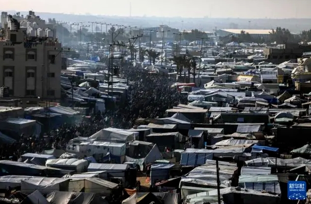 2024年2月10日在加沙地带南部城市拉法拍摄的一处临时营地 图源:新华社(亚西尔·库迪 摄)