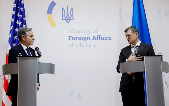 2024年5月15日,布林肯(左)和乌克兰外长库列巴在基辅举行联合新闻发布会。图自外媒