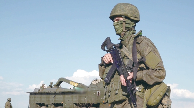 21日,俄军士兵对使用非战略核武器进行演练。(视觉中国)