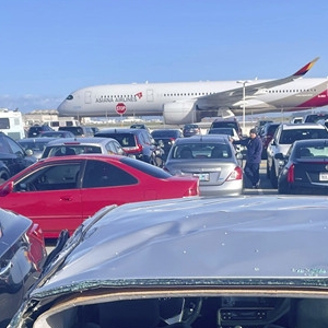 3月7日,美联航一架波音777飞机飞行中轮胎坠落,砸坏地面汽车车窗。(资料图)