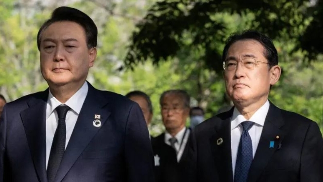 韩国总统尹锡悦(左)和日本首相岸田文雄 资料图 图源:韩媒