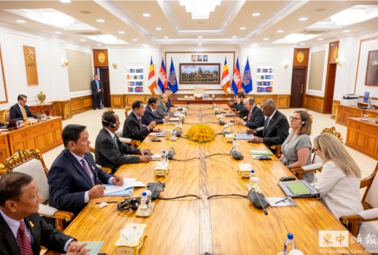柬埔寨参议院主席洪森4日与到访的美国防长奥斯汀举行会谈 图自《柬中时报》