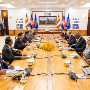 阿纳多卢通讯社援引柬新社报道称,奥斯汀4日早晨抵达柬埔寨,开始为期一天的访问。他与柬埔寨政府高级官员会晤,讨论如何加强两国“双边防务关系”。报道说,洪森对奥斯汀“改善柬埔寨与美国双边关系”的意图表示“支持”。