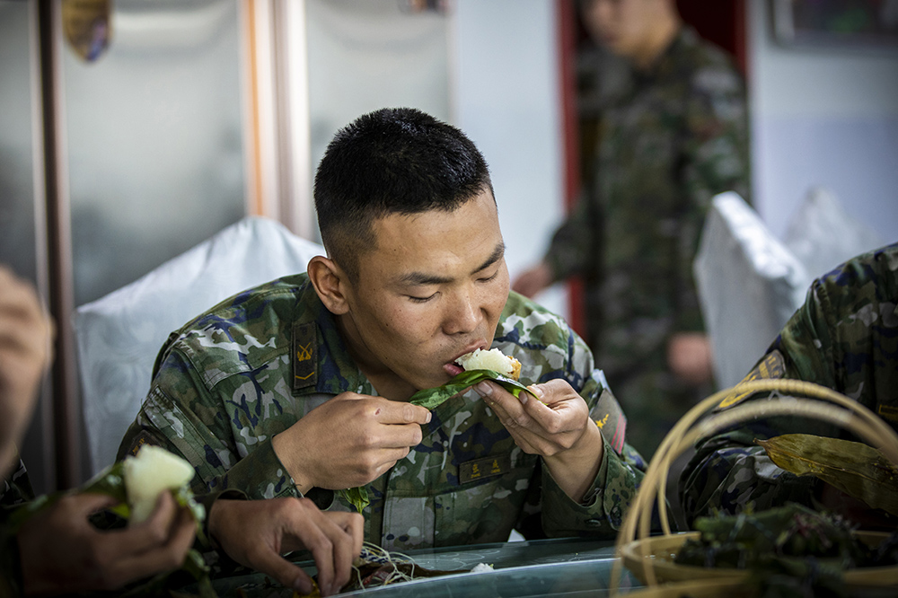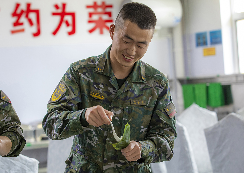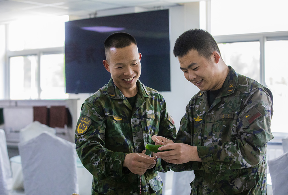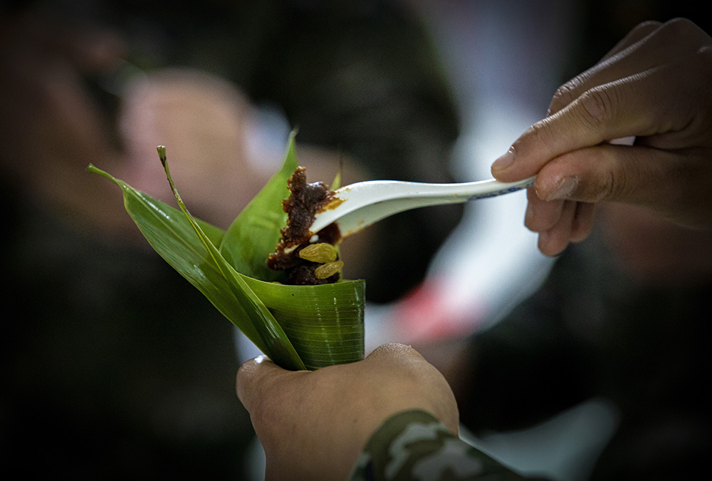 浓浓端午情,淡淡粽叶香。端午节前夕,武警甘南支队组织官兵开展包粽子大赛,共同感受传统文化带来的魅力。加糯米、添红枣、裹粽叶、扎紧绳……官兵们一边唠家常,一边互相交流家乡包粽子的手法,整个活动现场欢声笑语,其乐融融!(刘亚斌 张维 刘沛)