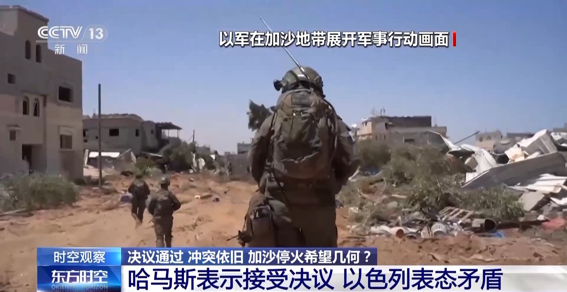 特约评论员 李绍先:而以方的表态就比较矛盾。尽管拜登公布方案时明确表示这个方案是以色列方面提出的,而且6月10日的安理会决议也明文写着以色列同意此方案。但在拜登宣布方案当天,以色列总理的表态一如既往,声称以色列停火条件没有改变,要实现消灭哈马斯、解救所有人质以及使加沙地带不再成为以色列威胁的三大目标。而安理会通过决议的当天,以色列在联合国的代表发言也明确表示要解救所有人质和摧毁哈马斯军事和统治能力。以色列的高官在哈马斯正式回复拜登方案后,还声称哈马斯已经拒绝了新方案。所以目前的态势是联合国决议通过后这两天,以色列哈马斯不仅没有停火,甚至战斗没有降温,反而出现了非常激烈的战斗场面。