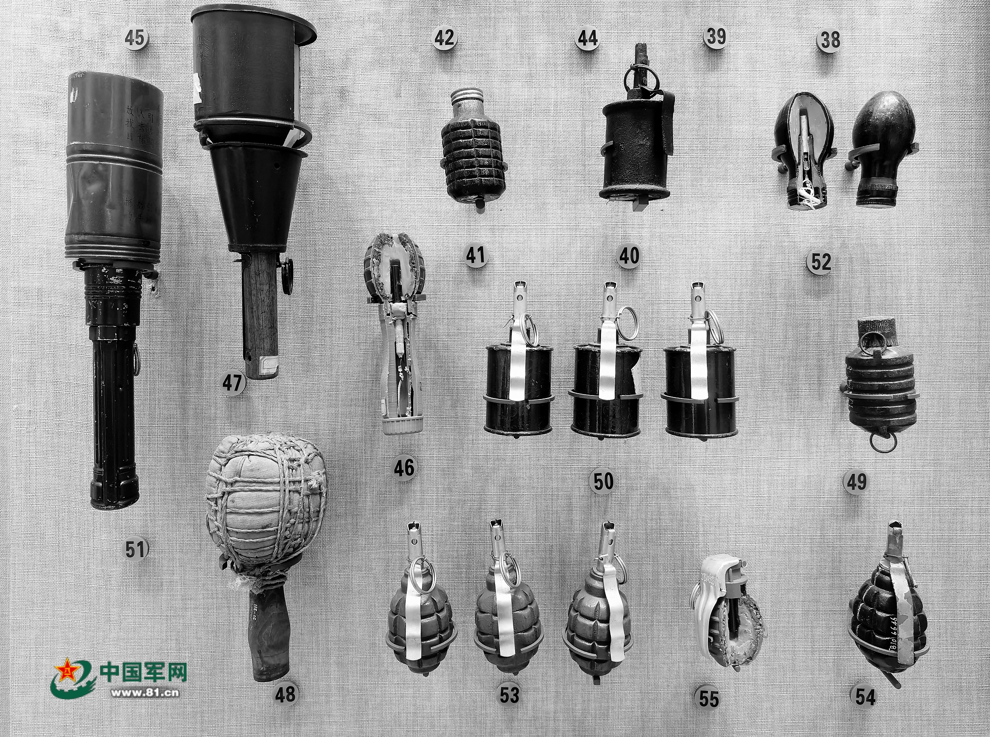 中国人民革命军事博物馆展出的国内外部分型号手榴弹。李凌宇摄