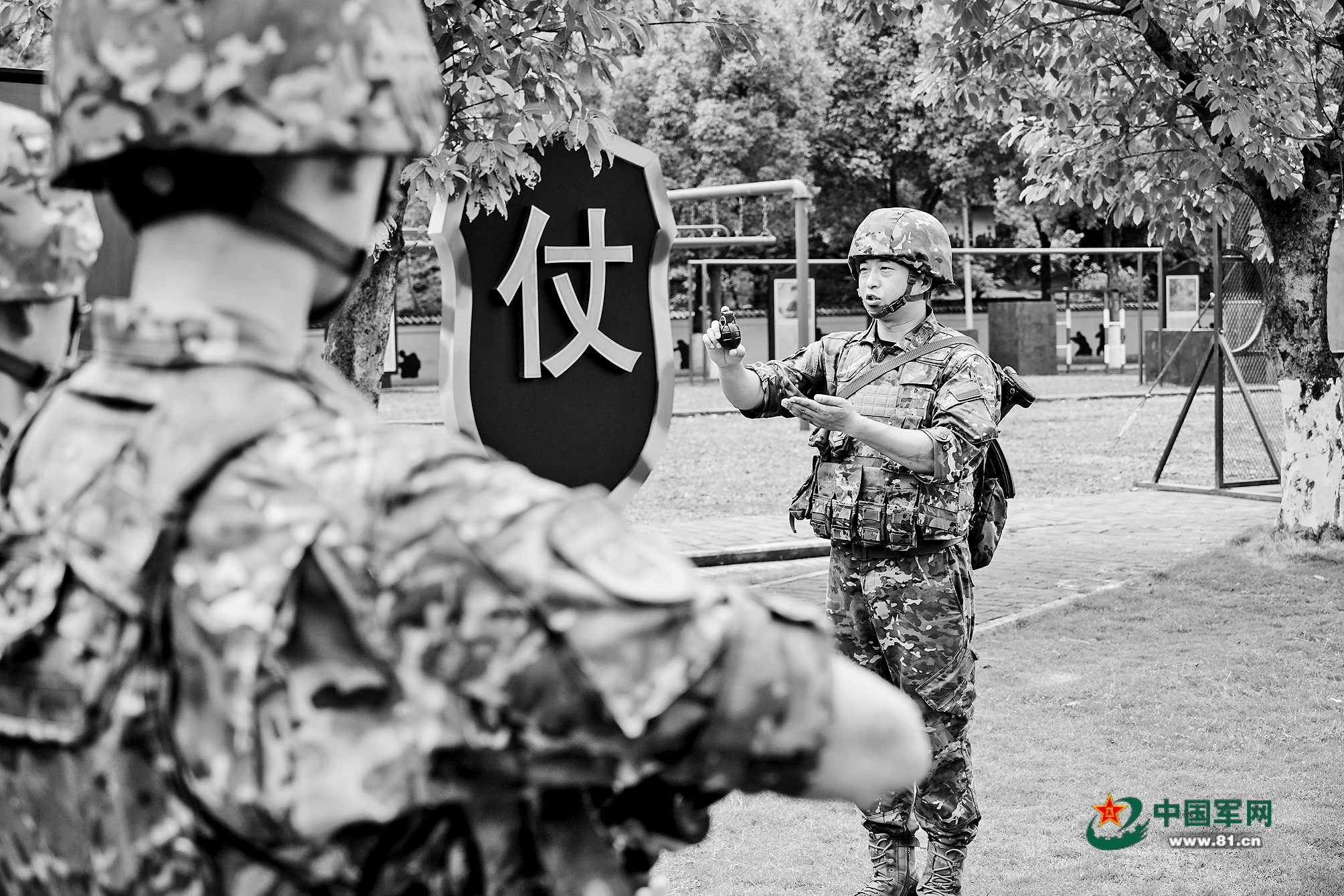 武警重庆总队执勤第一支队军士教练员(右一)讲解手榴弹构造及使用方法。刘西刚摄