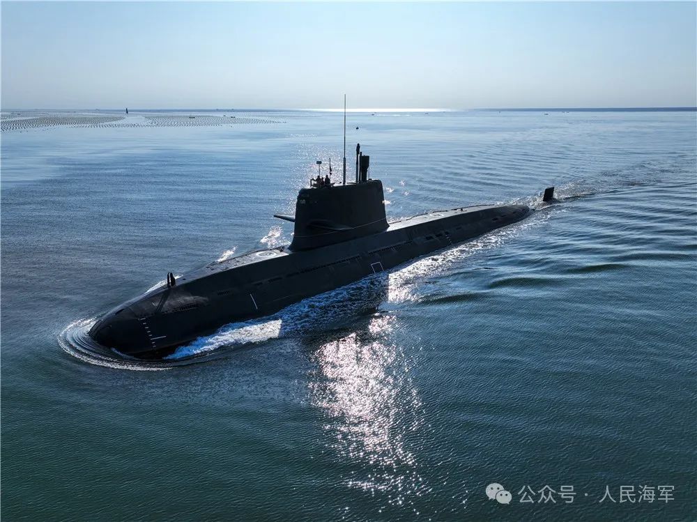2018年,南海海域海上阅兵现场,如长鲸凌波,似利剑出鞘,潜艇部队作为水下攻击群主力,光荣接受习主席检阅。