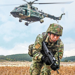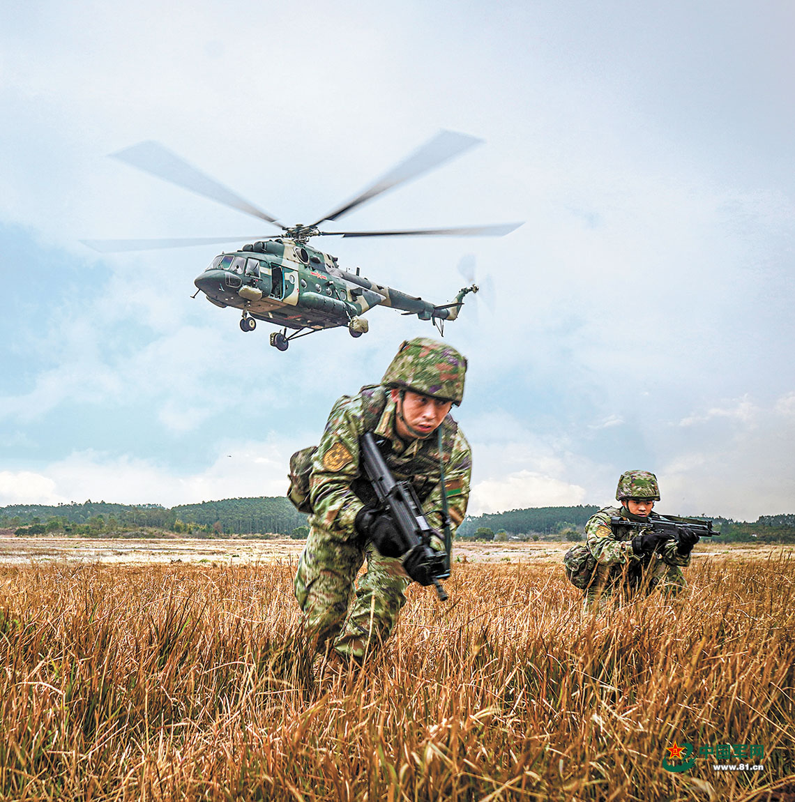 引擎轰鸣,直升机飞临预定地域上空。一声令下,任务分队官兵快速绳降着陆,向着目标地域隐蔽渗透。