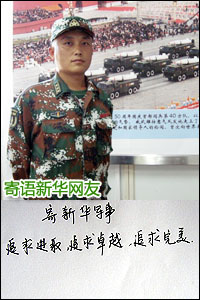 这次是我们部队第四次参加国庆阅兵,这次参加国庆60周年阅兵,决心要超越历史,达到世界一流的水平。
