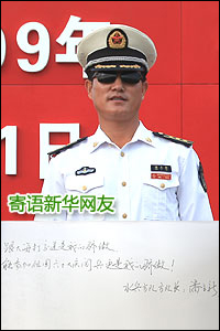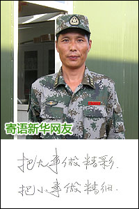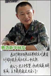 1984年国庆35周年第一次参加阅兵时,我是方队第七排面的排面长,负责整个排面的训练工作。1999年国庆50周年第二次参加阅兵时,我是方队的副方队长,也是方队的总教练。今年国庆60周年阅兵将是我参加的第三次大型阅兵活动。
