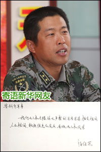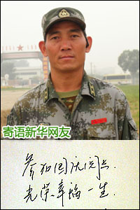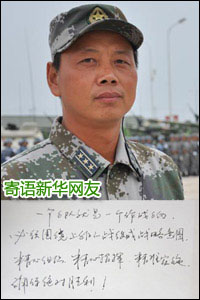 我受领了参加09年国庆阅兵的任务后,根据任务需要我被任命为方队长。第一次从全师1万多人里面选拔阅兵队员,身高要求是1.74米到1.8米。