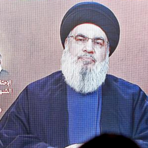 6月19日,在黎巴嫩首都贝鲁特,黎巴嫩真主党领导人纳斯鲁拉发表电视讲话。新华社发(比拉尔·贾维希摄)