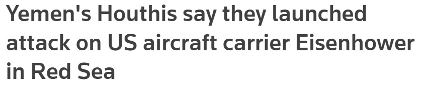 继5月底和6月初之后,胡塞武装22日第三次宣称用导弹袭击了“艾森豪威尔”号航母,且“取得成功”。