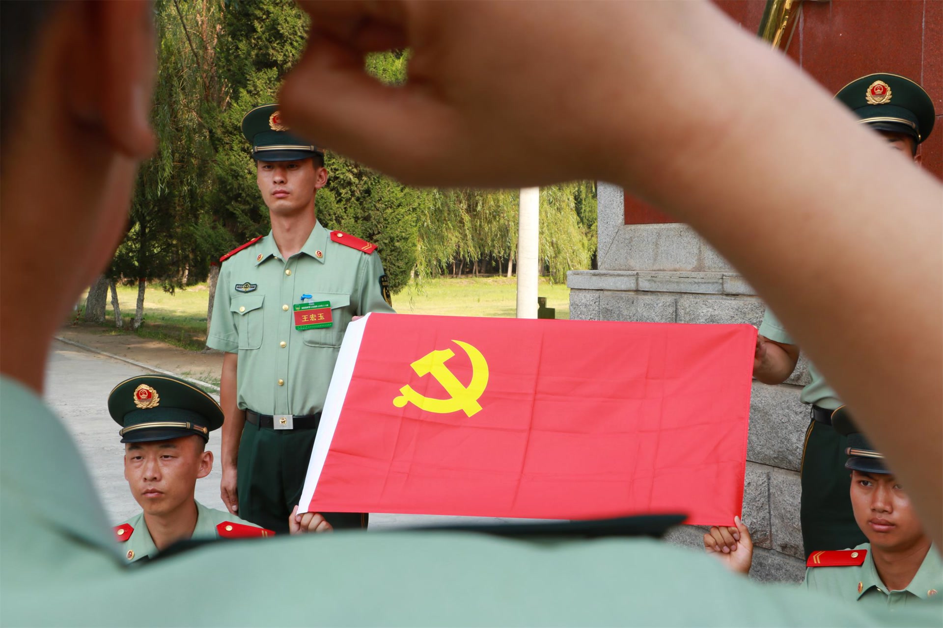 一面旗帜映初心,一颗红心永向党。“我志愿加入中国共产党,拥护党的纲领,遵守党的章程,履行党员义务,执行党的决定……”“七一”来临之际,武警北京总队机动某支队组织官兵面对鲜红的党旗,庄严地举起右手,紧紧地攥紧拳头,重温入党誓词,铿锵有力的宣读声响彻云霄。短短80字的入党誓词,字字千钧,全体党员用洪亮的声音、铮铮的誓言,表达了对党的无限忠诚。