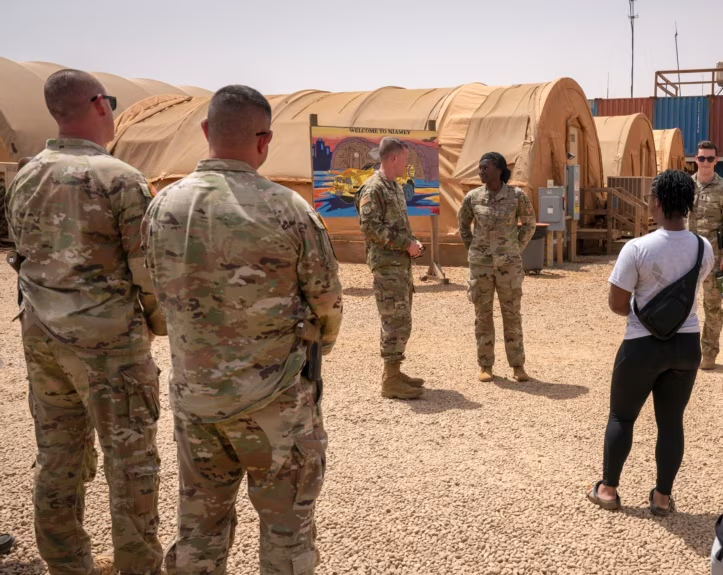 2024年5月,美军一少将在位于尼日尔首都尼亚美的101军事基地发表讲话。图源:美媒