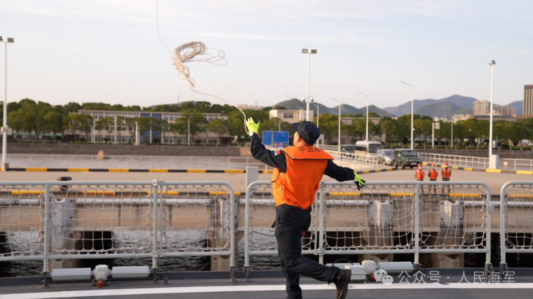 ▲靠泊码头前常见到这样的“优雅一抛”。