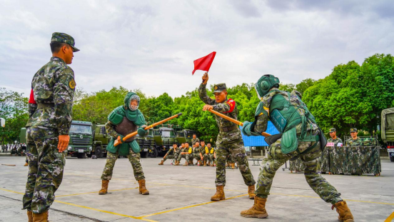 近日,北疆地区持续高温,驻守在这里的武警兵团总队某支队官兵不畏高温酷暑举行“铸剑——2024”军事训练大比武。来自基层与机关的7支代表队同台竞技,在射击、五公里武装越野、400米障碍、刺杀、擒敌对抗等多课目连贯考核中全面锤炼官兵实战能力。