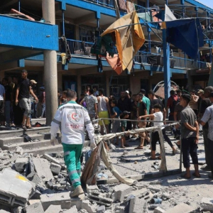 加沙民防部门发言人马哈茂德·巴萨勒说,由联合国管理的阿布阿拉班学校居住着“数以千计流离失所的人”,还说大部分死者是妇女和儿童。