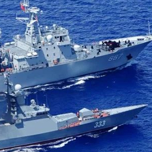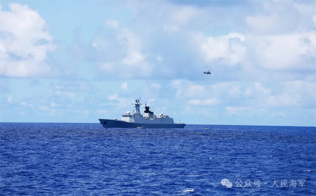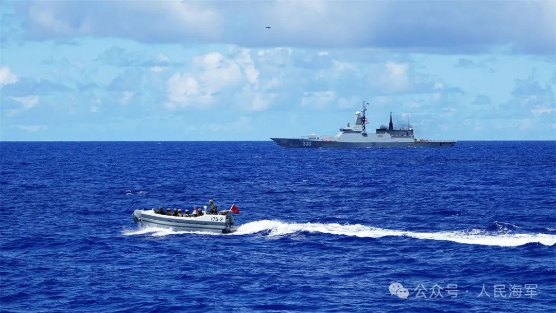中俄联合巡航编队组织临检拿捕演练。陈堂贵 摄