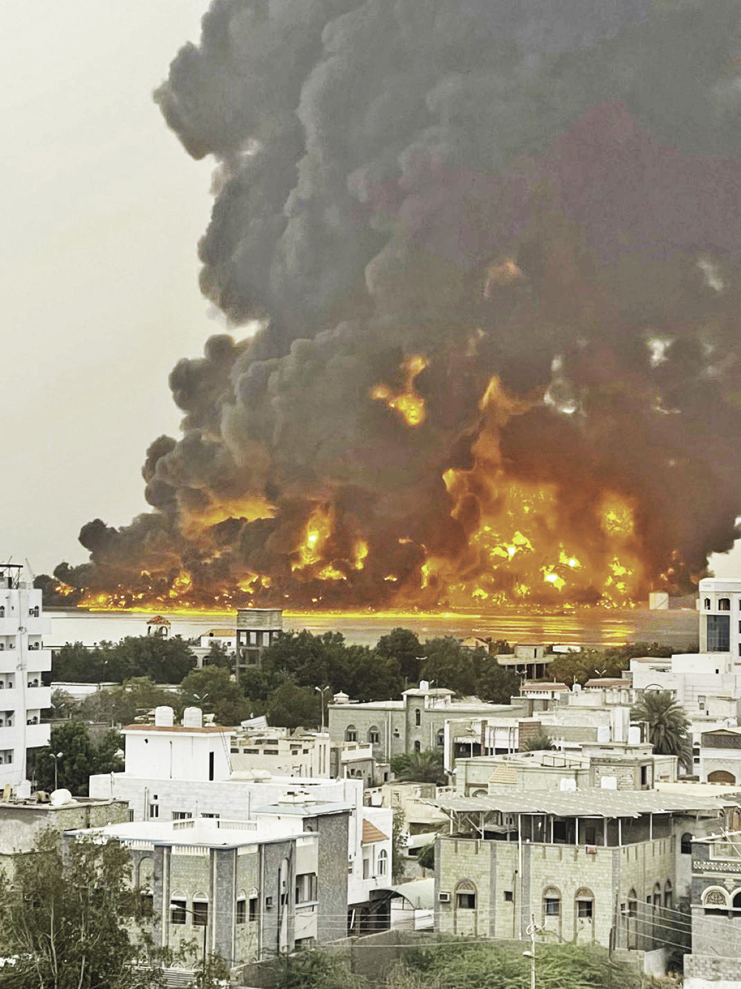 被炸也门港口的卫星图像。