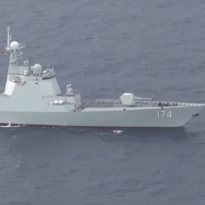 合肥舰,舷号174,是人民海军主战驱护舰系列052D型舰的3号舰。2013年6月下水,2015年12月正式加入人民海军战斗序列。052D型驱逐舰是我国自主设计建造的第三代驱逐舰,其凭借出色的性能,已经成为人民海军迄今为止装备数量最多的驱逐舰型号,具备较强的对空防御、对海攻击、对潜作战和编队指挥能力,是新时代人民海军水面舰艇部队的中坚力量。入列以来,合肥舰多次参加执行远海联合训练、航母编队训练、战备巡航等重大任务,圆满完成“海上联合-2017”中俄联演等联演联训任务。