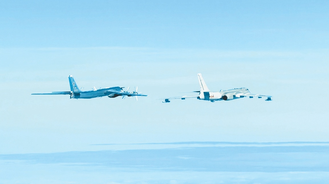 俄罗斯国防部在声明中表示,俄罗斯图-95MS轰炸机和中国空军轰-6K轰炸机在楚科奇海、白令海和太平洋北部海域上空进行联合巡逻。俄军消息中称,在飞行过程中,俄中机组人员演练了空中巡逻各个阶段的相互协作问题。联合巡航由俄空天军苏-30SM和苏-35S护航。
