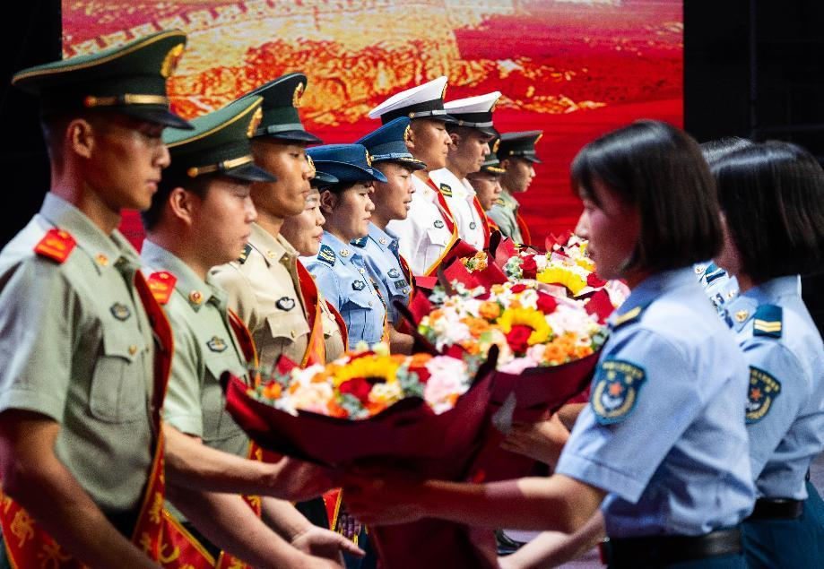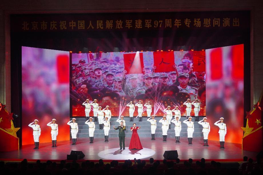 为庆祝中国人民解放军建军97周年,8月1日下午,北京市在军委机关事务管理总局礼堂举行“弘扬双拥光荣传统、汇聚强国强军伟力”庆“八一”双拥慰问演出活动。驻京部队官兵、退役军人和社会拥军组织代表、北京市区相关部门负责同志900余人参加并观看演出。