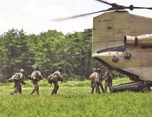 7月22日,参加美日联合军事演习的美陆军士兵登上CH-47运输直升机执行任务