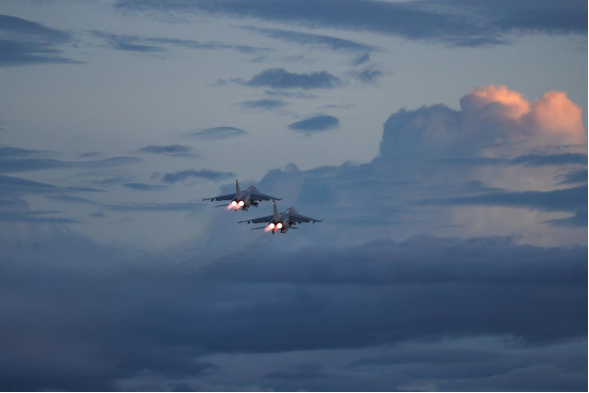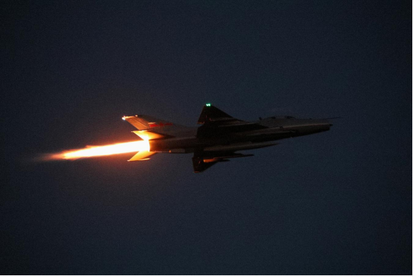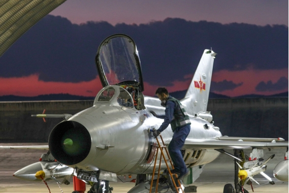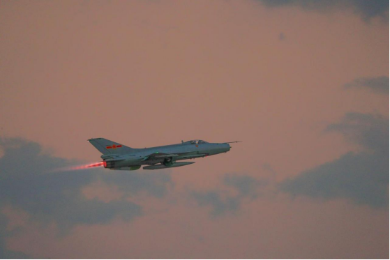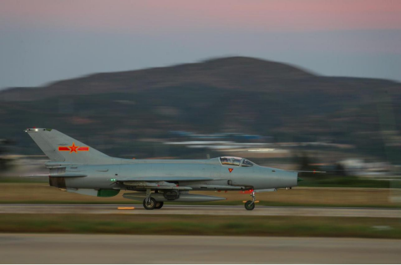 夜幕降临,战机依次滑出,呼啸升空,直奔目标空域开展多课目跨昼夜飞行训练。(和骞、吴笛、黄荣开)