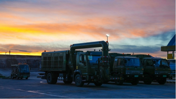 接到保障指令后,南部战区空军某部军械、油料、四站等多支场站保障分队快速响应,为战鹰加注燃料、供应弹药;道面清扫组综合运用机械化巡检和人工清理相结合手段,对飞行场区道面实行网格化清查管理;驱鸟分队充分利用科技创新,综合运用夜视探鸟雷达、电子化驱鸟炮操控系统、无人机喷洒驱鸟药剂等手段监控记录分析鸟情,为战机顺利升空创造条件。