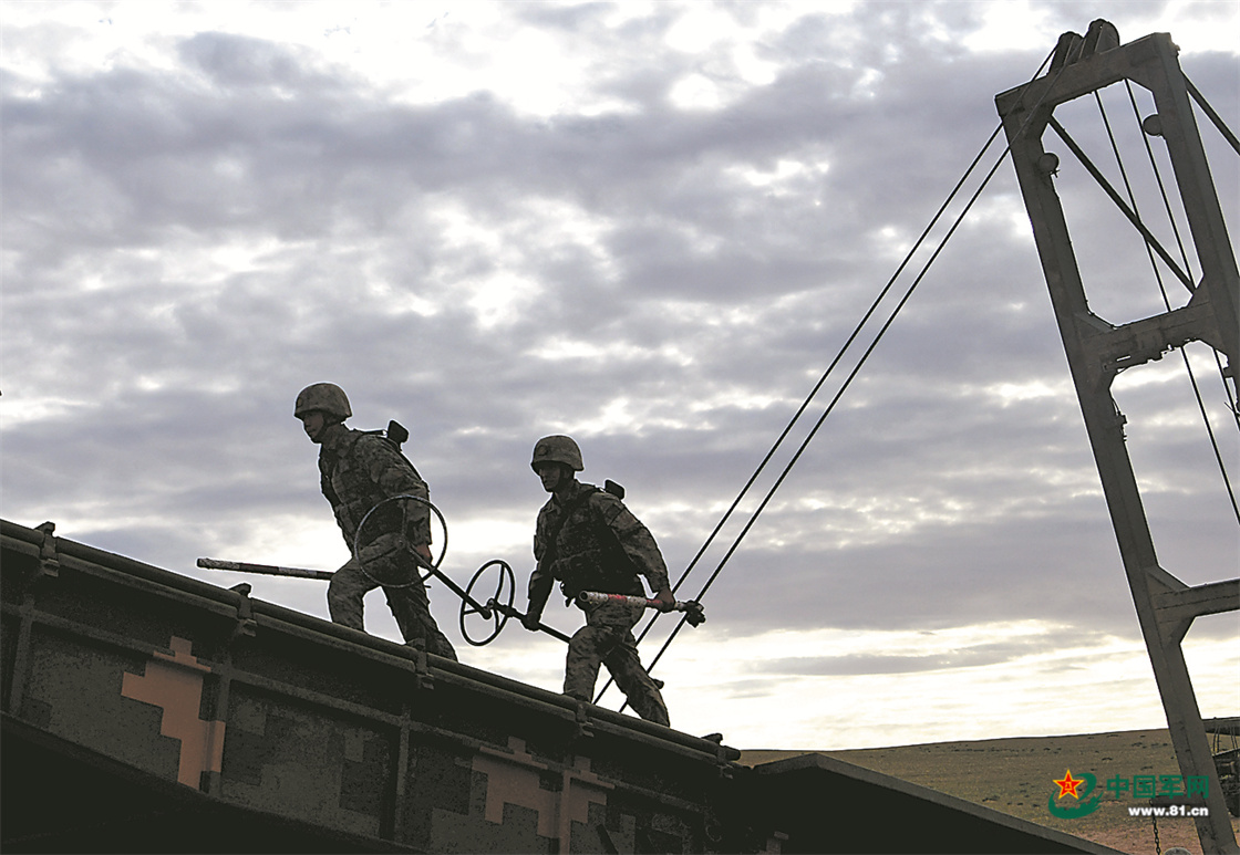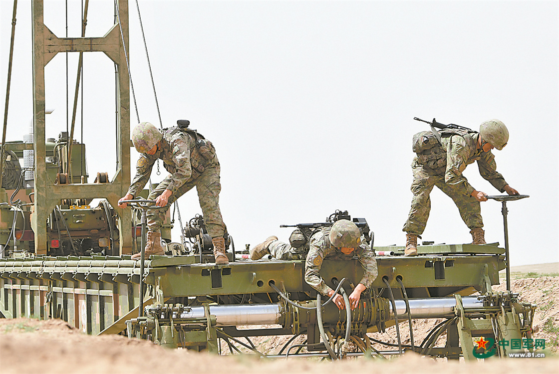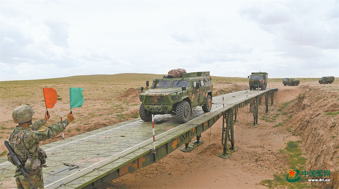 抵达现场后,官兵迅速进行车轴定位、确定架设位置……作业地域地质松软、凹凸不平,给桥梁架设带来一定困难。面对作业过程中出现的“特情”,桥梁技师沉着应对,迅速指挥作业手进行调整。官兵们科学分工,默契配合,快速推进作业进度。不久,一座重型机械化桥横跨在沟壑之间。在对桥梁安全进行测试后,车辆陆续通过桥梁,驶往作战地域。