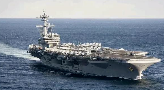 当地时间8月2日,美国“罗斯福”号航母进入伊朗霍尔木兹海峡继续执行任务(来源:央视今日关注)