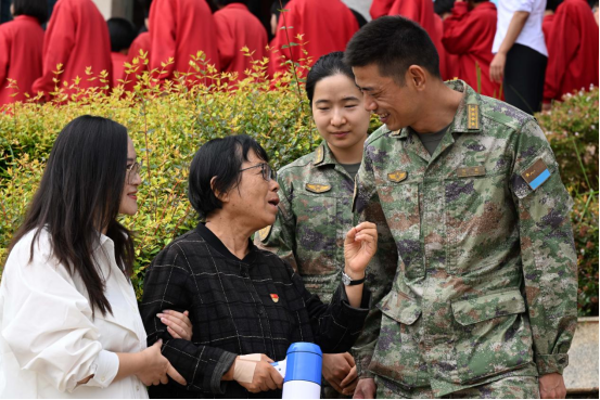 在一天的活动中,当看到官兵维护飞机沾满油污和骄阳下训练晒黑的脸庞时,张校长多是红了眼眶,张校长代表全体师生对部队官兵表示崇高的敬意,同时也以一位长辈的身份对所有年轻官兵寄予深切的关心。