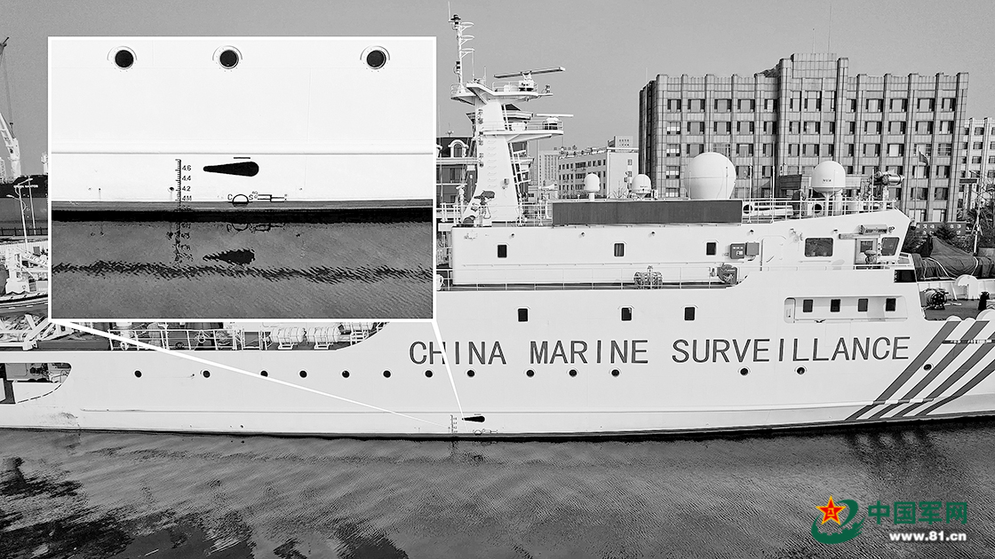 “中国海监1001”号船上的“吃水线”。图片由作者提供