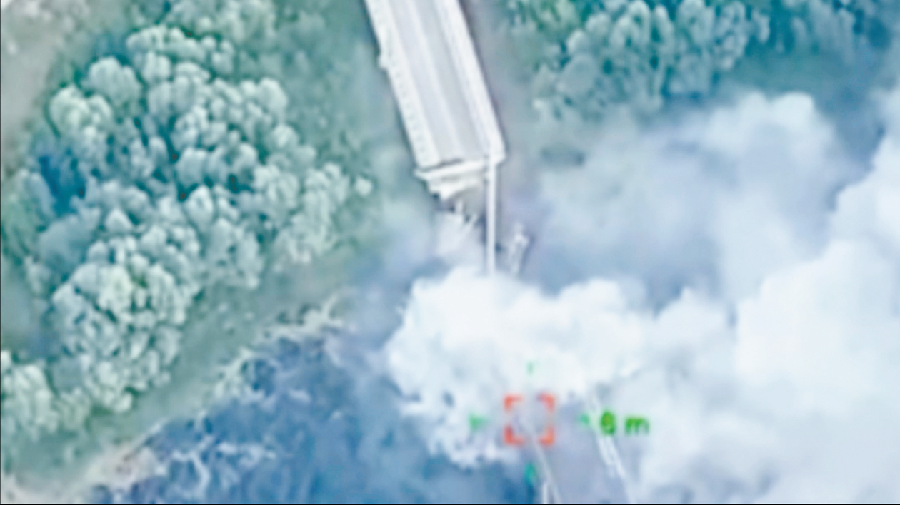 16日,乌军攻击了俄库尔斯克州一座具有战略意义的桥梁。(视觉中国)