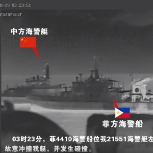 菲方海警船故意冲撞中方海警艇