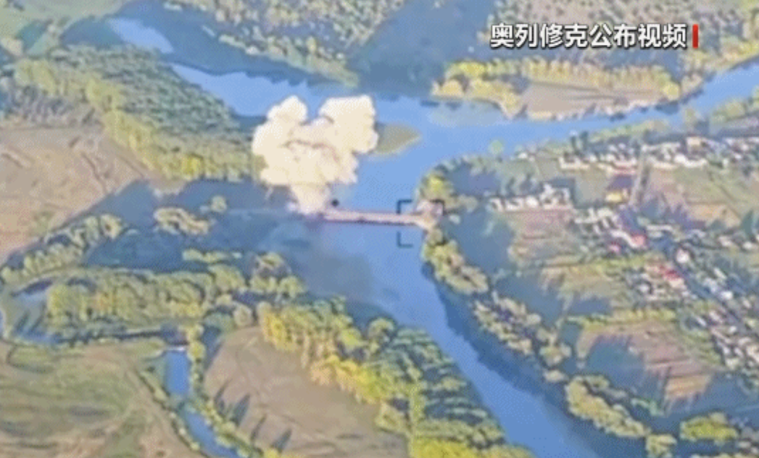 当地时间8月18日,乌克兰空军司令奥列修克在社交媒体发布一段乌军在库尔斯克地区摧毁一座桥梁的视频(来源:央视新闻)