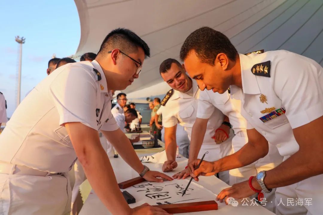 埃及海军官兵学写书法。陈元增 摄