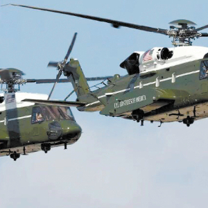 通常美国总统在短途出行时会选择搭乘直升机,他登上的这架直升机将获得“海军陆战队一号”的呼号。根据白宫的安防规定,美国总统的任何出行都会得到至少两架直升机的支援,它们将由美国空军C-17运输机运送到目的地,确保随时可以使用。即便美国总统选择搭乘车队出行,这些直升机仍要求随时准备起飞,以便将总统送往安全区域。多年来,执行这些任务的主要是10架VH-3D和6架VH-60N直升机,但它们建造于越战时期,面临机体严重老化的问题,未来将由VH-92A全面取代。美国海军陆战队20日在声明中表示,“总统在前往芝加哥时首次乘坐了‘海军陆战队一号’直升机。过渡期结束后,VH-92A将取代现役VH-3D‘海王’和VH-60N‘白鹰’直升机执行要员运输任务。”