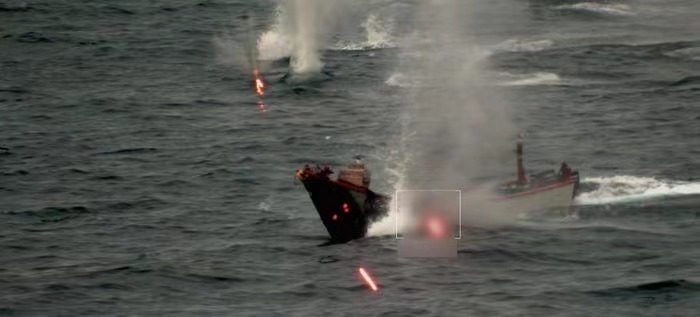 据报道,法国军方22日表示,参与此次救援行动的法国驱逐舰抵达该地区时,军舰侦测到一艘“满载炸药”的无人艇试图再次对商船发起攻击,法军摧毁了这一威胁。