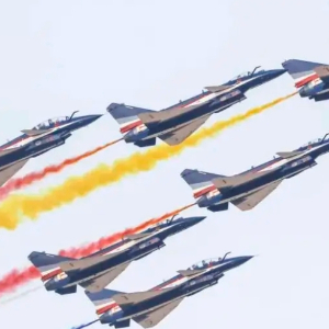 8月26日,中国空军1架运-20、7架八一飞行表演队歼-10表演机从西北某机场起飞,赴埃及参加航展并进行飞行表演和静态展示。