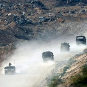 资料图:当地时间2023年12月27日,以色列军车驶过加沙地带北部。
