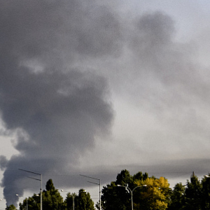 当地时间2024年8月26日,乌克兰基辅,城市郊区升起烟雾。(视觉中国)