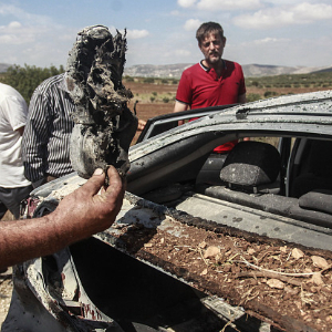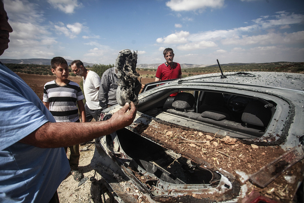 当地时间2024年8月28日,约旦河西岸杰宁,巴勒斯坦人正在检查一辆被以色列军队炸毁的汽车。(视觉中国)