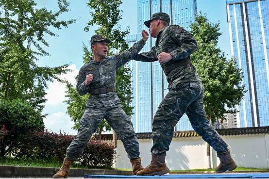 武警警官学院某学员队围绕执勤基础课等内容展开强化训练,熟练掌握并强化哨兵履行职责的基本方法。作为一名未来一线带兵人,学会执勤时如何防止袭击,学会教授哨兵反袭击基本动作,才能圆满完成勤务任务。