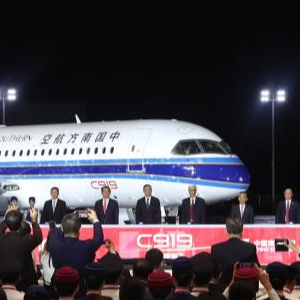 《环球时报》记者在交付活动现场看到,随着机库大门缓缓拉开,喷涂着五星红旗的国航C919首架机与红色木棉花涂装的南航C919首架机同台亮相、交相辉映。中国商飞向国航、南航颁发《飞机销售证》并移交飞机交付纪念钥匙,中国民航局向国航、南航颁发《国籍登记证》《单机适航证》和《无线电台执照》。这标志着中国三大航都开启了C919时代,也是C919开启商业化运营以来的重要一步。