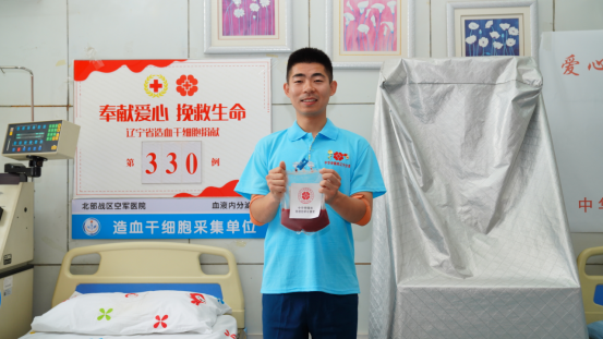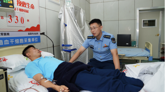 北部战区空军医院血液科病房,空军航空兵某部中士周游经历5个小时分离采集,成功捐献 296毫升造血干细胞,为白血病患者带去生的希望。至此,周游成为中华骨髓库第18121例、辽宁省第330例、所在部队首例造血干细胞捐献者。