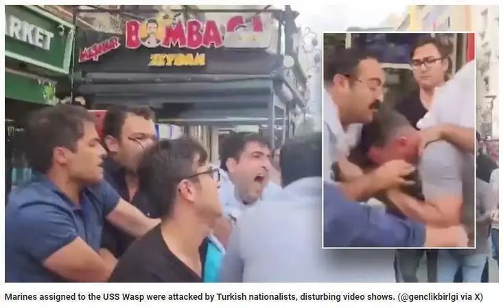 报道称,事件发生在爱琴海沿岸城市伊兹密尔。伊兹密尔省省长办公室发布声明称,参与殴打美军士兵的这些土耳其人属于一个反美组织“土耳其青年联盟”。这两名美国海军陆战队队员“遭受身体攻击”,他们是驻扎在美海军“黄蜂”号两栖攻击舰的士兵。五角大楼表示,这艘军舰目前停靠在土耳其西部海域。