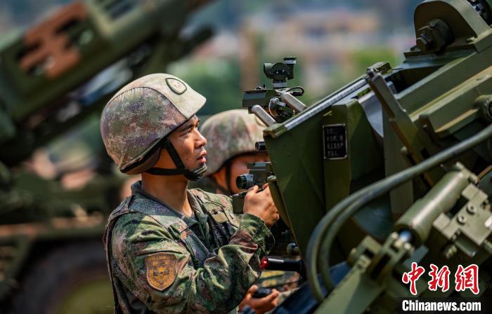 图为官兵进行车载榴弹炮操作模拟瞄准。李双春 摄